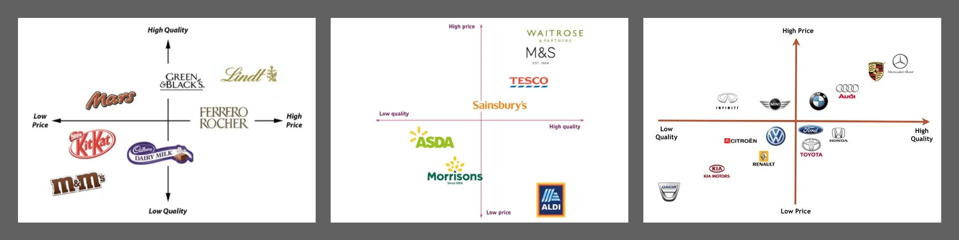 If you've ever dipped a toe into marketing, you've probably come across the classic positioning chart – the one with ‘price’ on one axis and ‘quality’ on the other. The examples typically plot either supermarkets, car brands, or chocolate bars into a neat-ish line to show that better quality comes at a higher cost. A tidy visual for a Marketing 101 class, maybe – but not particularly useful when you're doing the real work of building a brand.