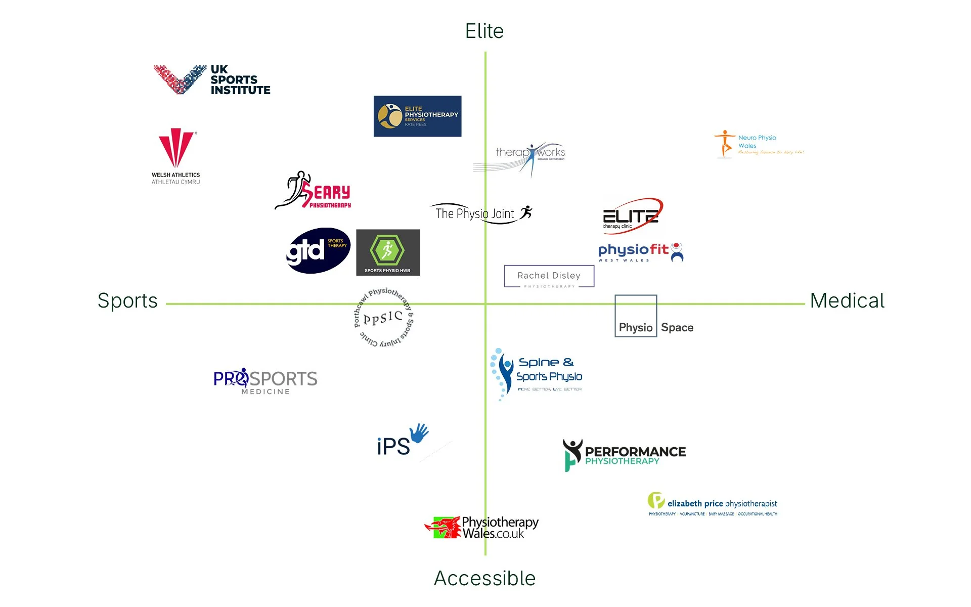 When we worked with Fortify Physiotherapy, the goal was to position them as a sports-specialist physio practice with high accessibility. We knew geography influenced customer choice which made us focus locally, aswell as aligning the type specialist treatment. Plotting competitors on axes of Sports vs. Clinical and Elite vs. Accessible helped us spot who Fortify was truly up against in the mind of their audience and where to start when it came to creating differentiation.